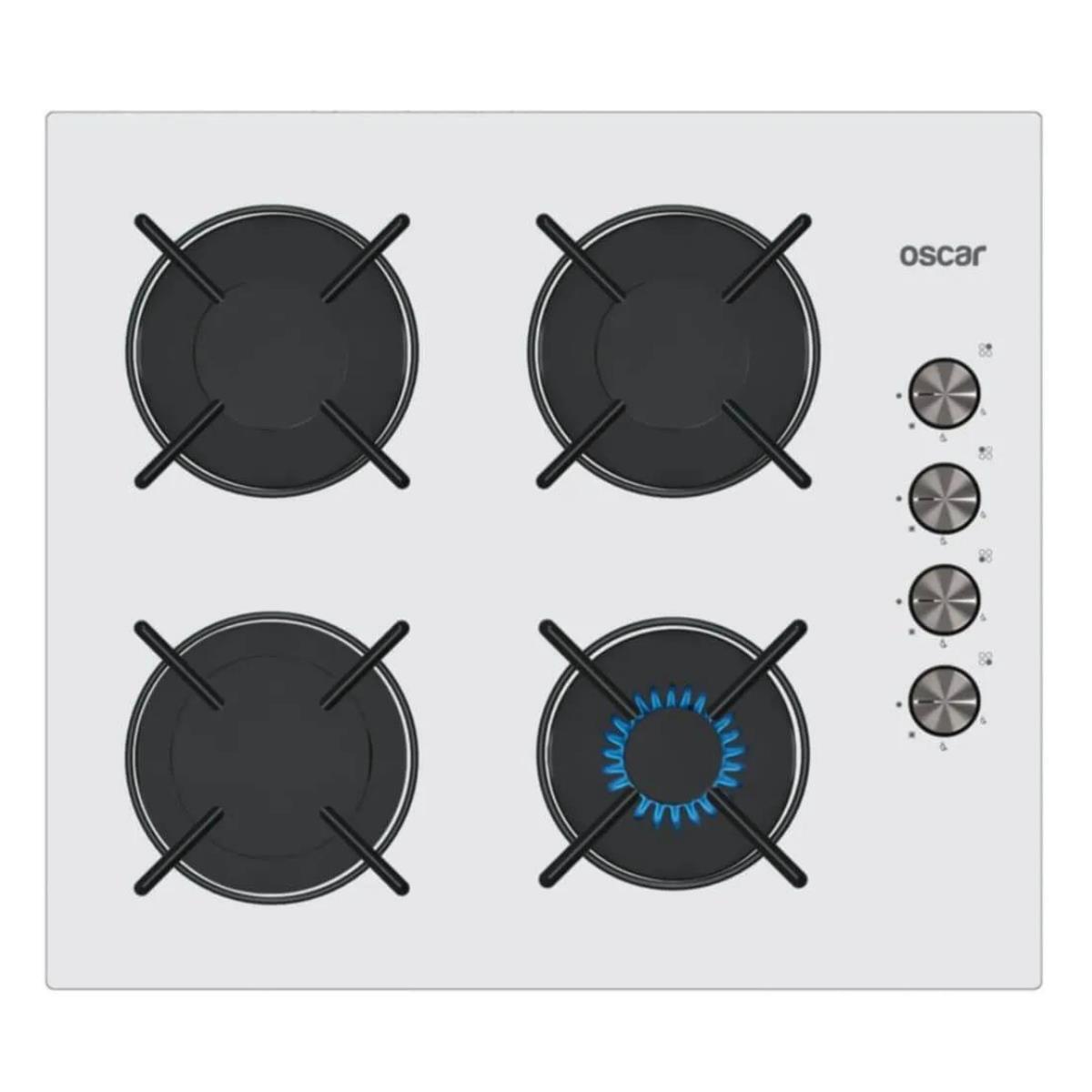 Oscar 3603-N 60CM Ankastre Beyaz Cam Ocak 4G Emaye Izgara