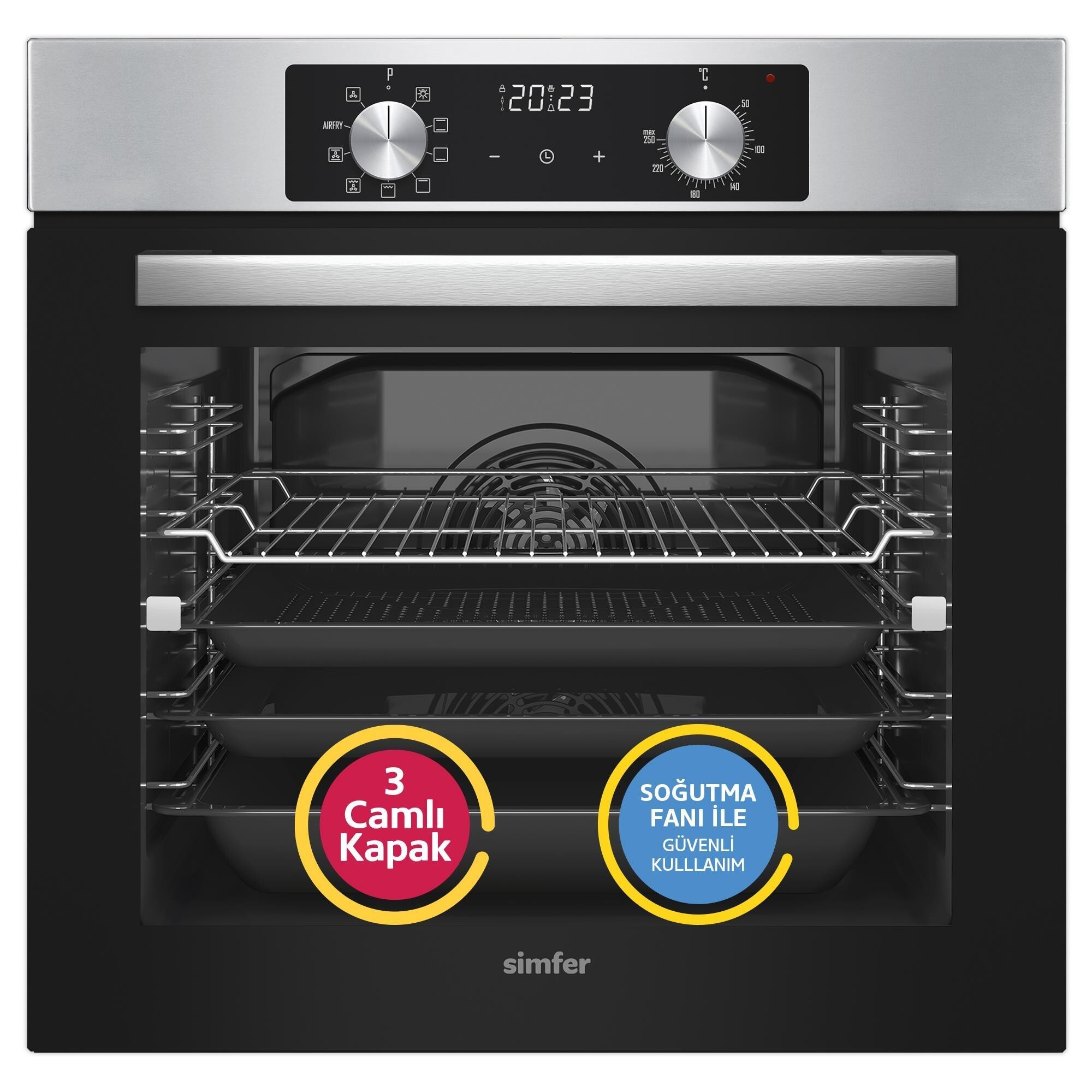 1 Adet Standart Tepsi, 1 Adet Derin Tepsi, 1 Adet Airfry Tepsi Ve 1 Adet Premium Tel Izgara