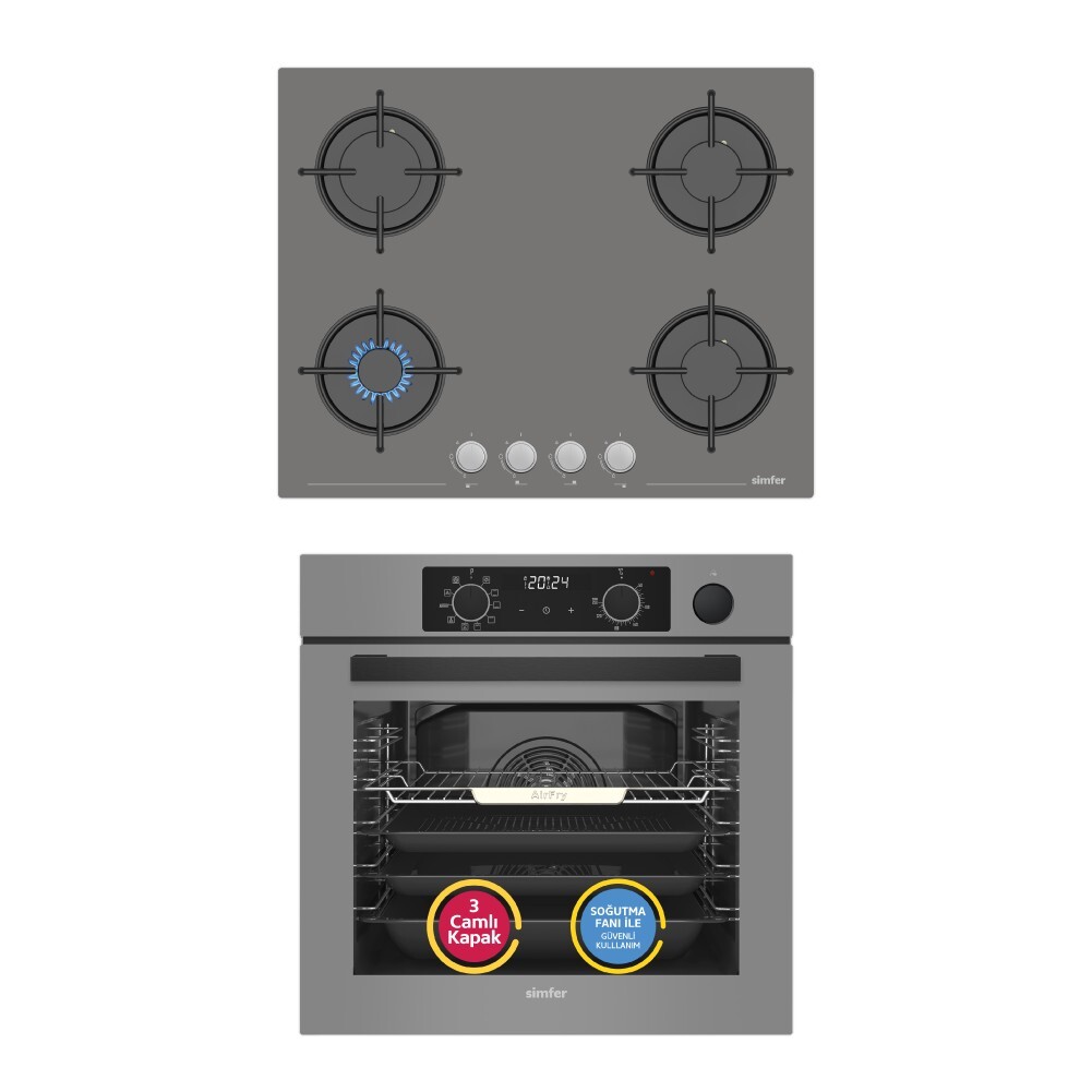 Simfer 3656-N 65CM Ankastre Gri Cam Ocak 4G Emaye Izgara