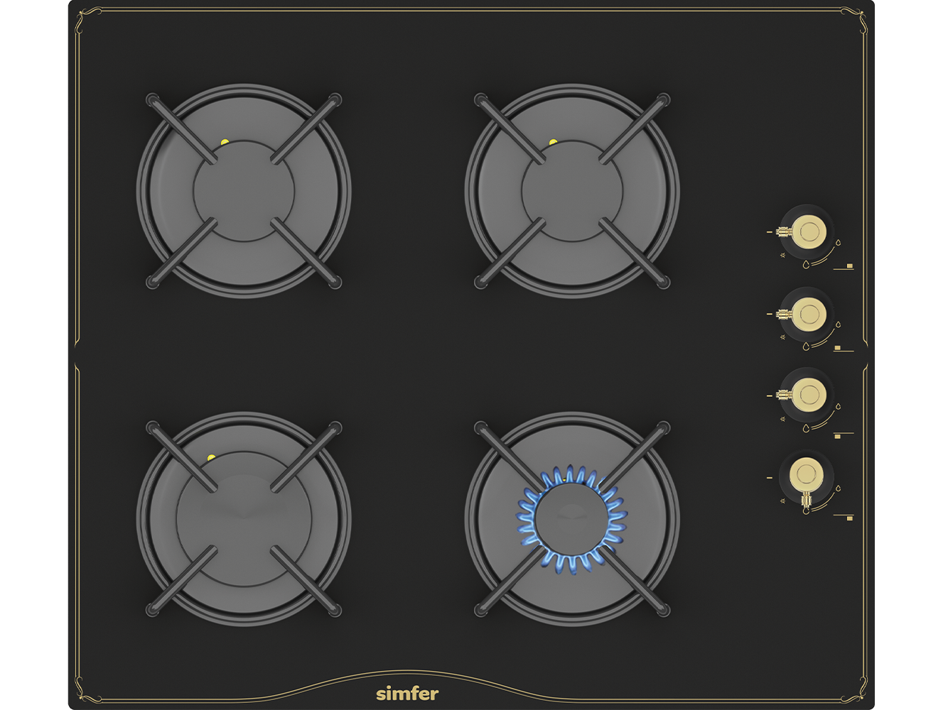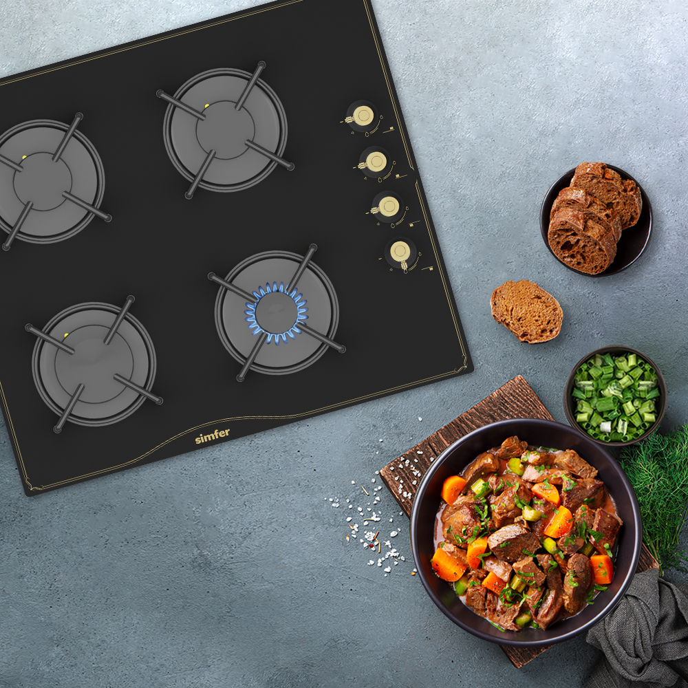 Simfer 3325 60CM Rustik Ankastre Siyah Cam Ocak 4G Emaye Izgara