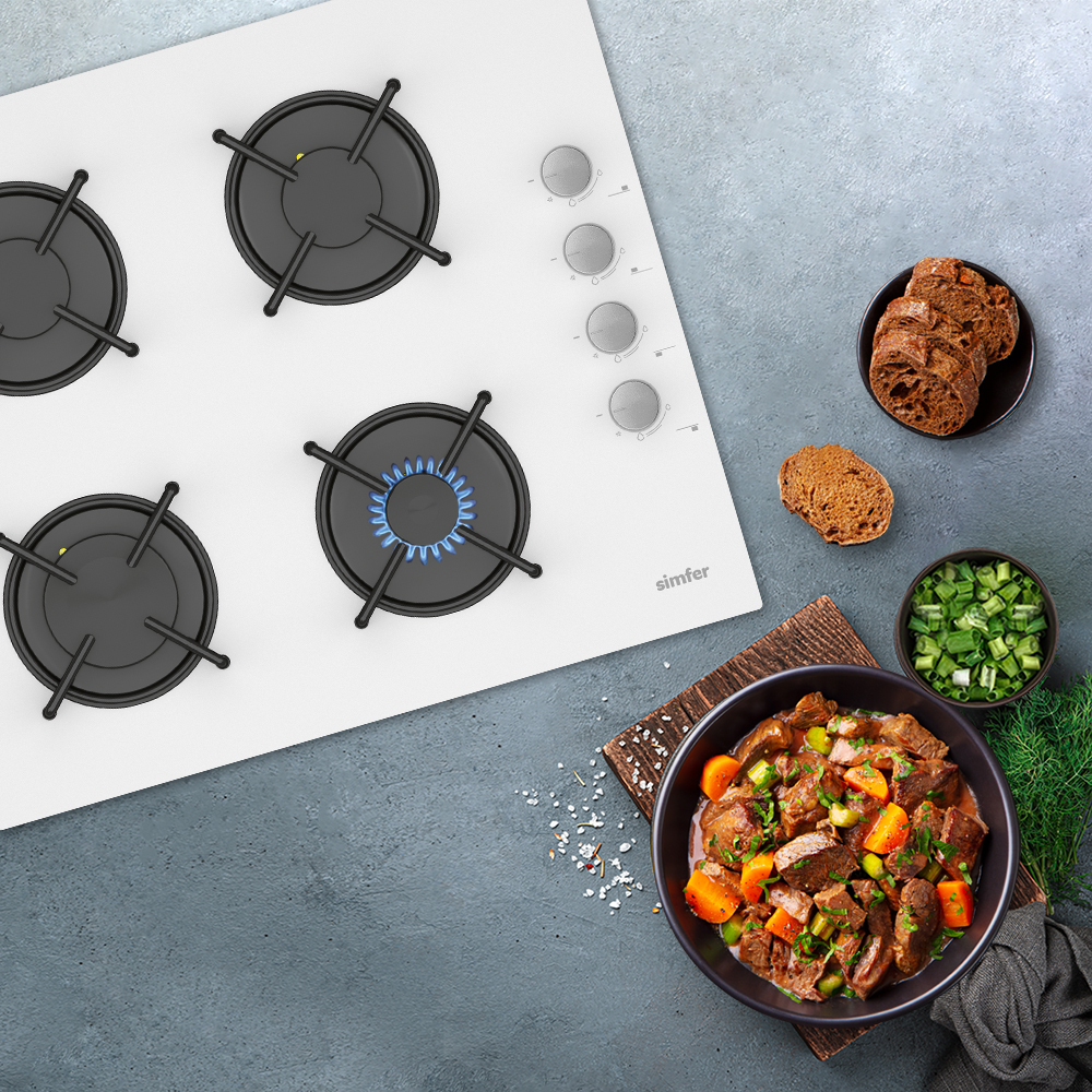 Fırın, davlumbaz gibi diğer ankastre ürünlerle uyumlu olarak tercih edebileceğiniz cam ankastre ocak tekli olarak da kullanılabilir. Simfer cam ankastre ocak ürünün ölçülerine uygun olarak kesilip hazırlanan alana gömme olarak yerleştirir. Enerji kaynağı ve tasarım biçimiyle farklılık gösteren ankastre serisindeki üründe LPG kullanılır. Izgara tipi emaye malzemeden oluşan Simfer 3507 4 Gözü Gazlı 60 cm Beyaz Cam Ankastre Ocak dört gözü de gazlıdır. Sağlam ızgara malzemesiyle farklı büyüklükteki tencerelerle uyum sağlar. Ürün üzerinde bulunan dört adet düğme otomatik ateşleme sistemiyle kullanılır. Ergonomik tasarımlarıyla kullanışlı düğmeler farklı yemek türleri için tercih edilen ısı ayarına getirilebilir. Beyaz cam şıklığını mutfaklara taşıyan Simfer cam ankastre ocak otomatik gaz kesme emniyetiyle de güvenli bir kullanım sunar. Siyah emaye malzeme kullanılarak üretilen ızgara beyaz camla uyumlu bir görünüm sergiler. Simfer 4 gözü gazlı ocak üzerinde bulunan düğmeler ise silver rengiyle şıklığı tamamlar.