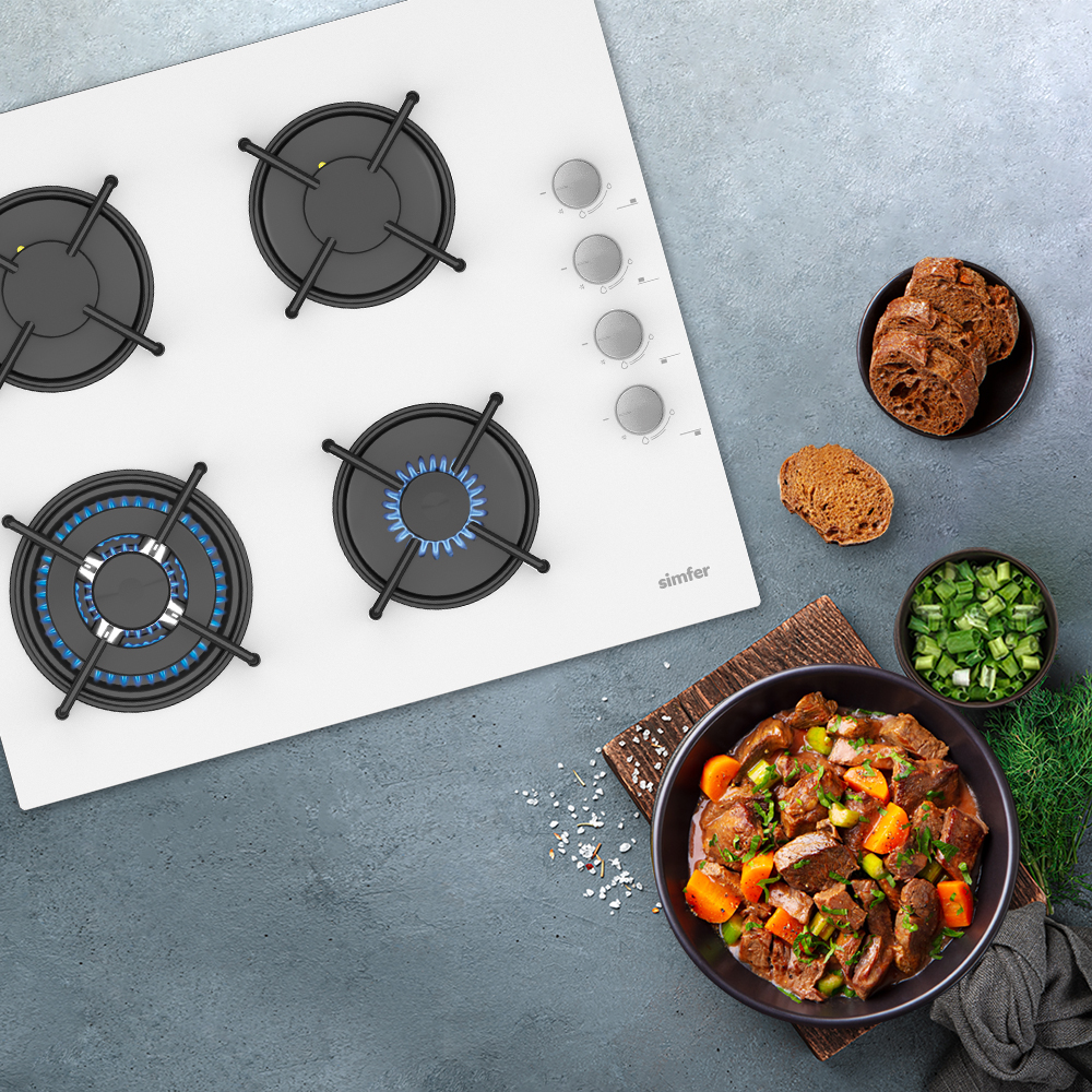 Modern tesislerinde yüksek kalite standartlarına göre üretilen tüm Simfer ürünleri gibi, Simfer cam ankastre ocak modelleri de inovatif ve kullanışlı olması sebebiyle sıkça tercih edilir. Şık tasarımı, teknolojik ve teknik özellikleri sayesinde hem güvenli hem de keyifli bir kullanım sağlar. Simfer 3509 3G + 1 Wok 60 cm Beyaz Cam Ankastre Ocak;