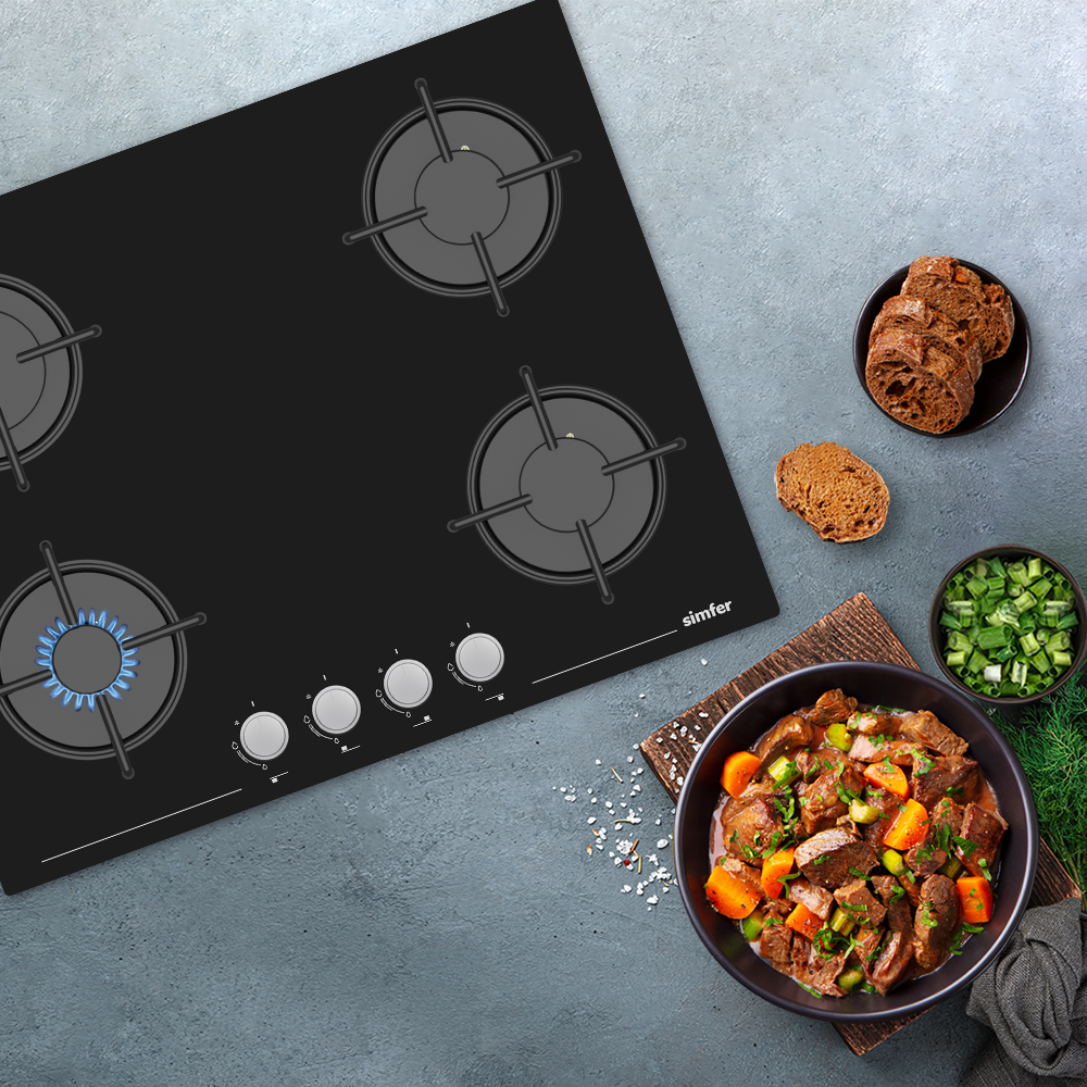 Siyah şıklığını modern mutfaklarla buluşturan Simfer ankastre ocak gövdesi cam malzemeden üretilmiştir. Ürün üzerinde bulunan dört gözde enerji kaynağı olarak doğalgaz ve LPG kullanılabilir. Izgara sisteminde ise dayanıklı emaye kullanılmıştır. Geniş pişirme alanıyla farklı büyüklükteki tencereleri aynı anda kullanabilirsiniz. Siyah cam ankastre ocak üzerindeki düğmeler ergonomik kullanımlıdır. Pişirilen yemeğin türüne uygun olarak ısı ayar düğmeleri üzerinden ayarlama yapılır. Zamandan tasarruf sağlayan Simfer cam ankastre ocak kullanımı da güvenlidir. Otomatik gaz kesme emniyeti bulunan Simfer cam ocak olası riskleri bertaraf eder. Siyah cam şıklığını yansıtan ürünün ızgarası da siyah renklidir. Ürün üzerinde bulunan gri renkli ısı ayar düğmeleri siyah cam ile uyumlu bir estetik sergiler. Cam gövdesiyle kolay temizlenebilir Simfer cam ankastre ocak kullanımı hijyeniktir.