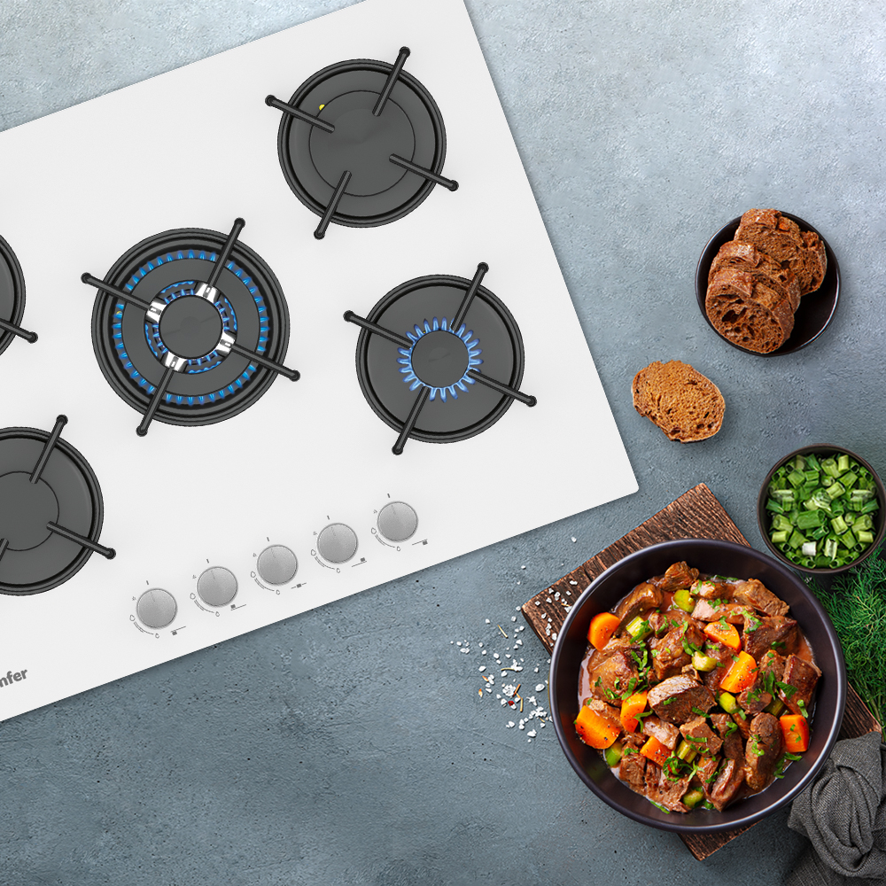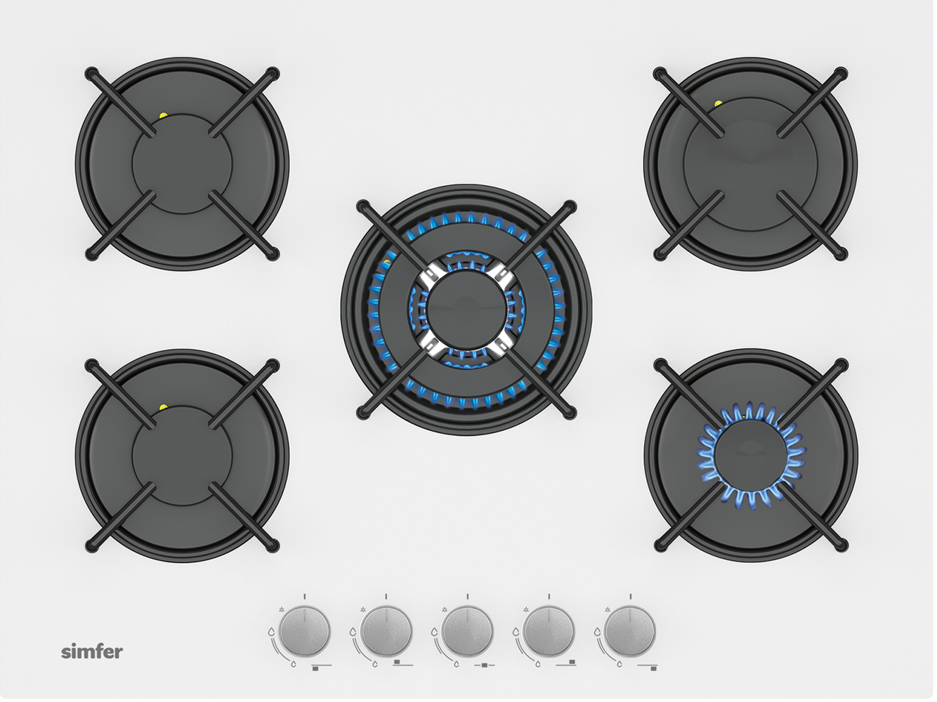 Simfer 3751-N 70CM Ankastre Beyaz Cam Ocak 4G+1Wok Emaye Izgara