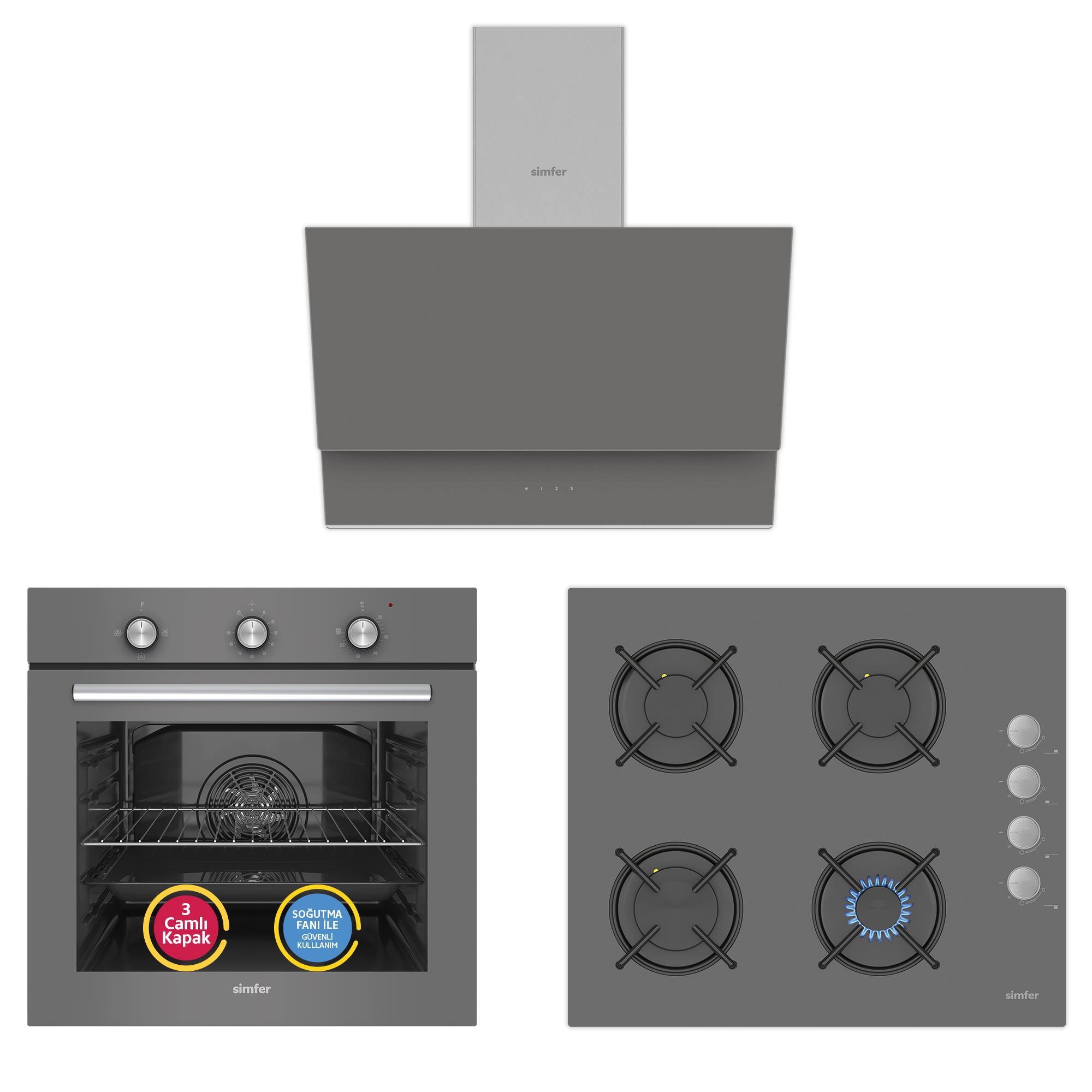 Simfer 60cm Premium Dokunmatik Gri Cam Davlumbaz