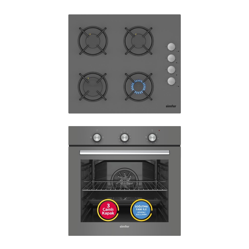 Simfer 4 FonksiyonAnkastre Fırın Silver Cam Power Turbo Ankastre Elektrikli Fırın