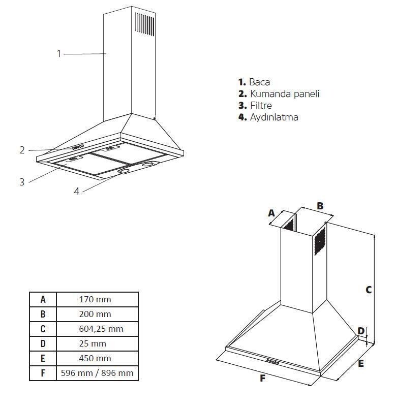 Simfer 60CM Push Button Siyah Metal Piramit Davlumbaz