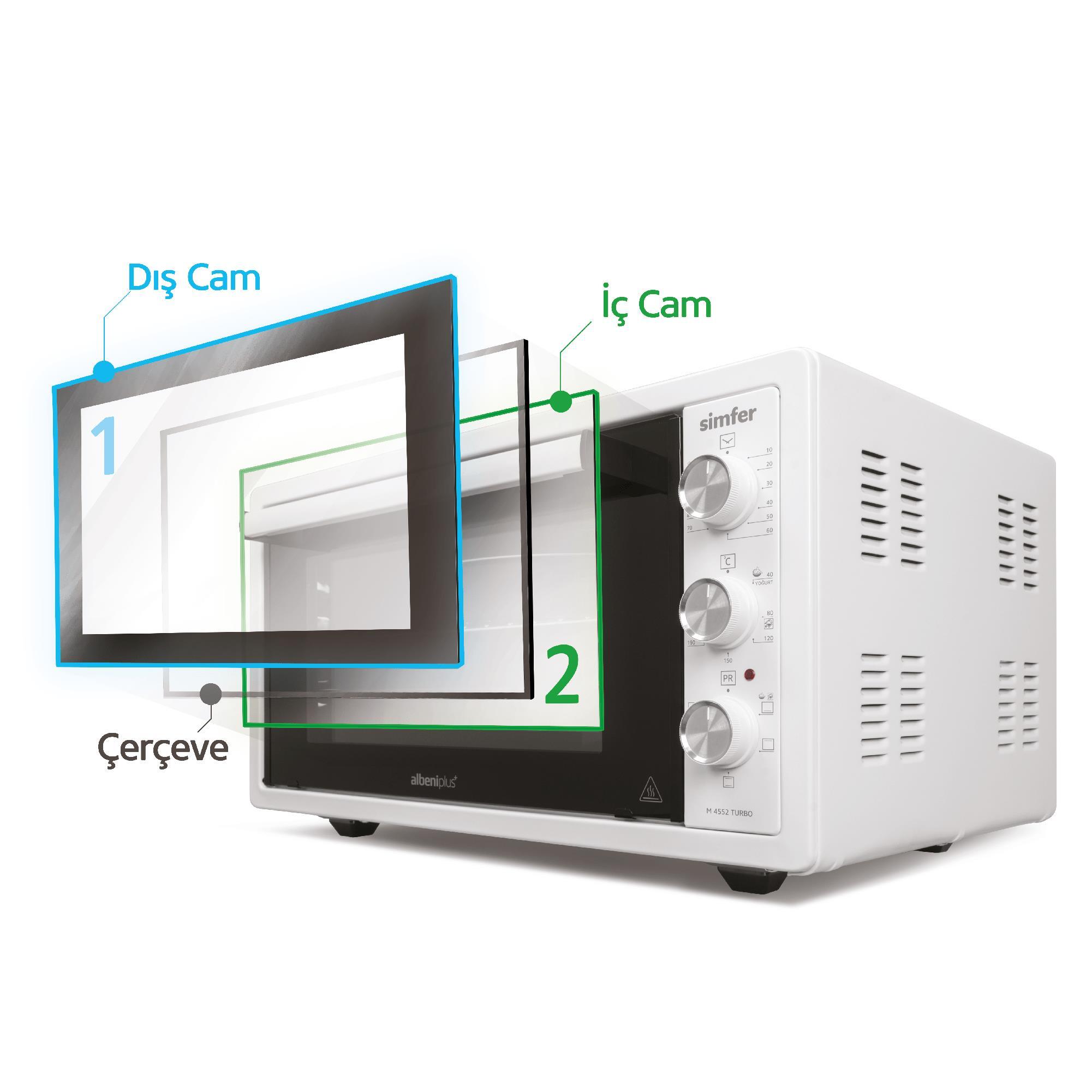 Simfer 4552 Beyaz 45 LT Turbo Fan Mini / Midi Fırın - 6 Fonksiyon,Yoğurt Yapma, Buz Çözme & İç Aydınlatma