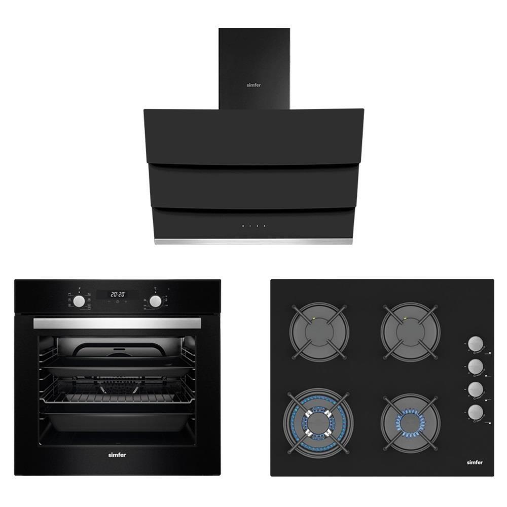 3'lü set içerisinde fırın, davlumbaz ve ocak bulunur.