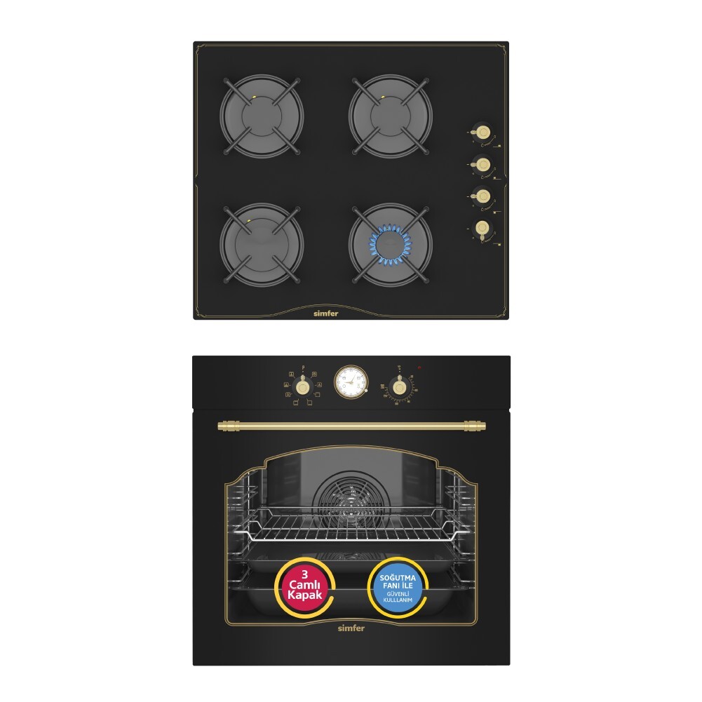 Simfer 7349 8 Fonksiyon Retro Ankastre Fırın Siyah Cam Multi Turbo