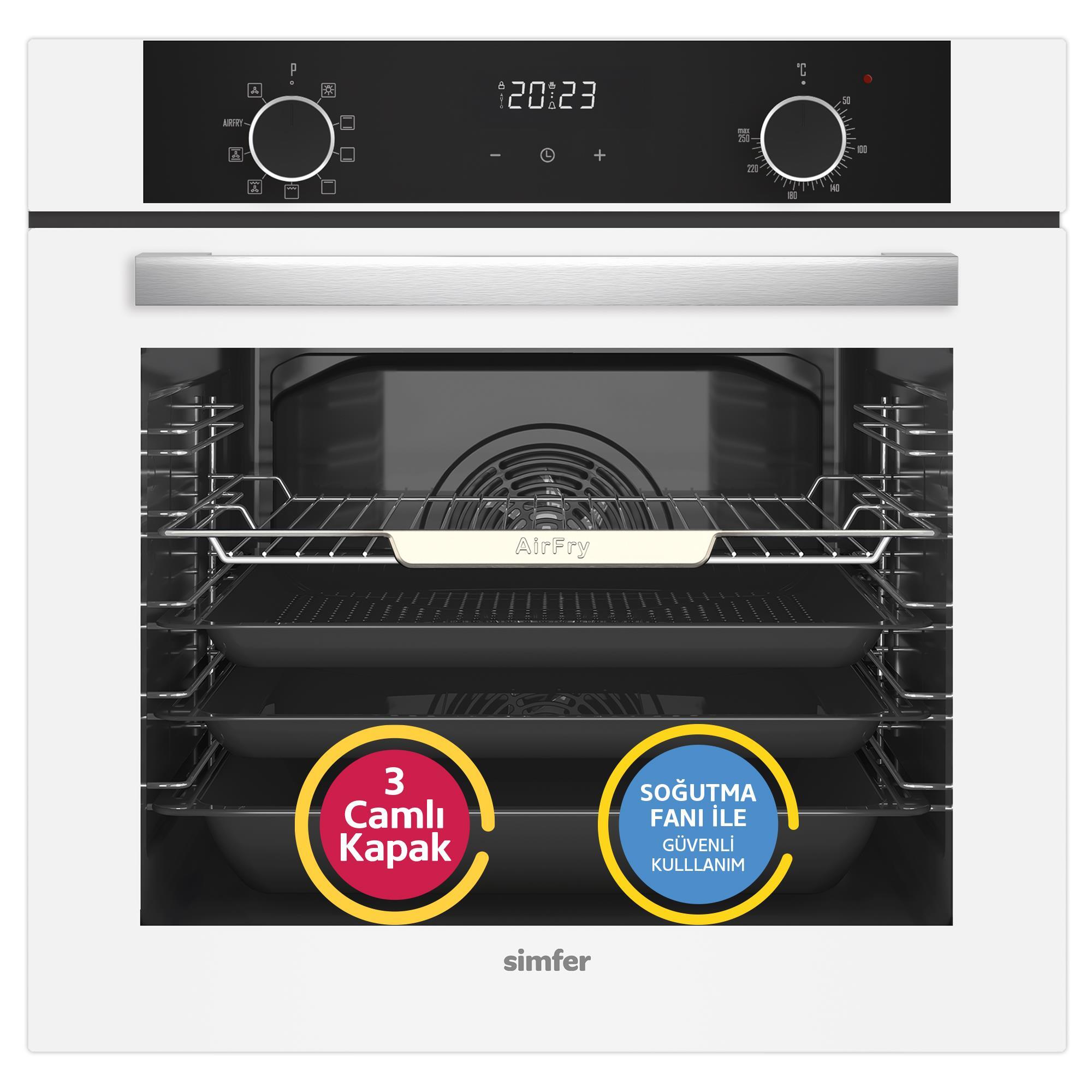 Simfer 8216 10 Fonksiyon Airfry Beyaz Cam Ankastre Fırın Dijital