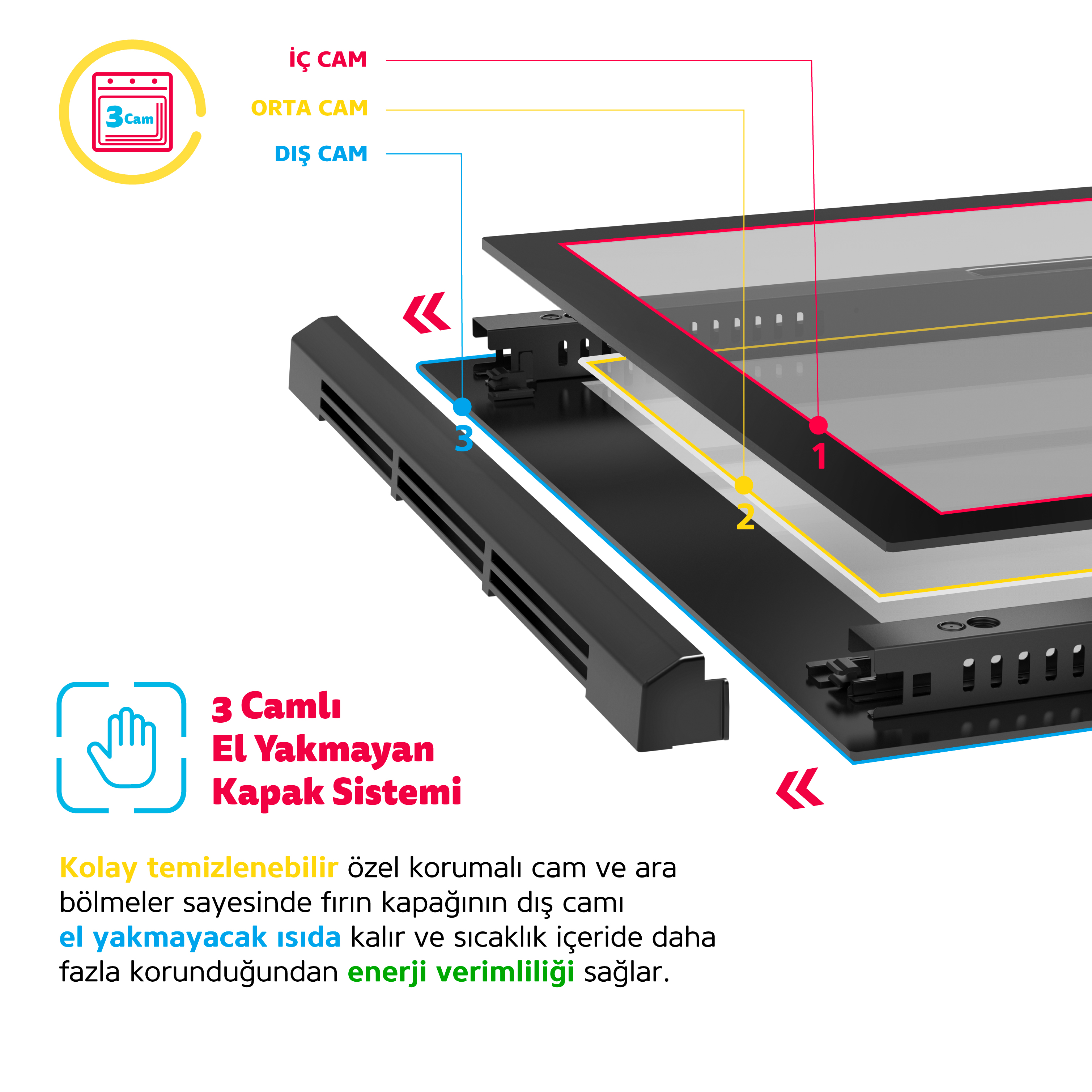 Simfer 8223 9 Fonksiyon QS Gri Cam Ankastre Fırın Power Turbo Dijital