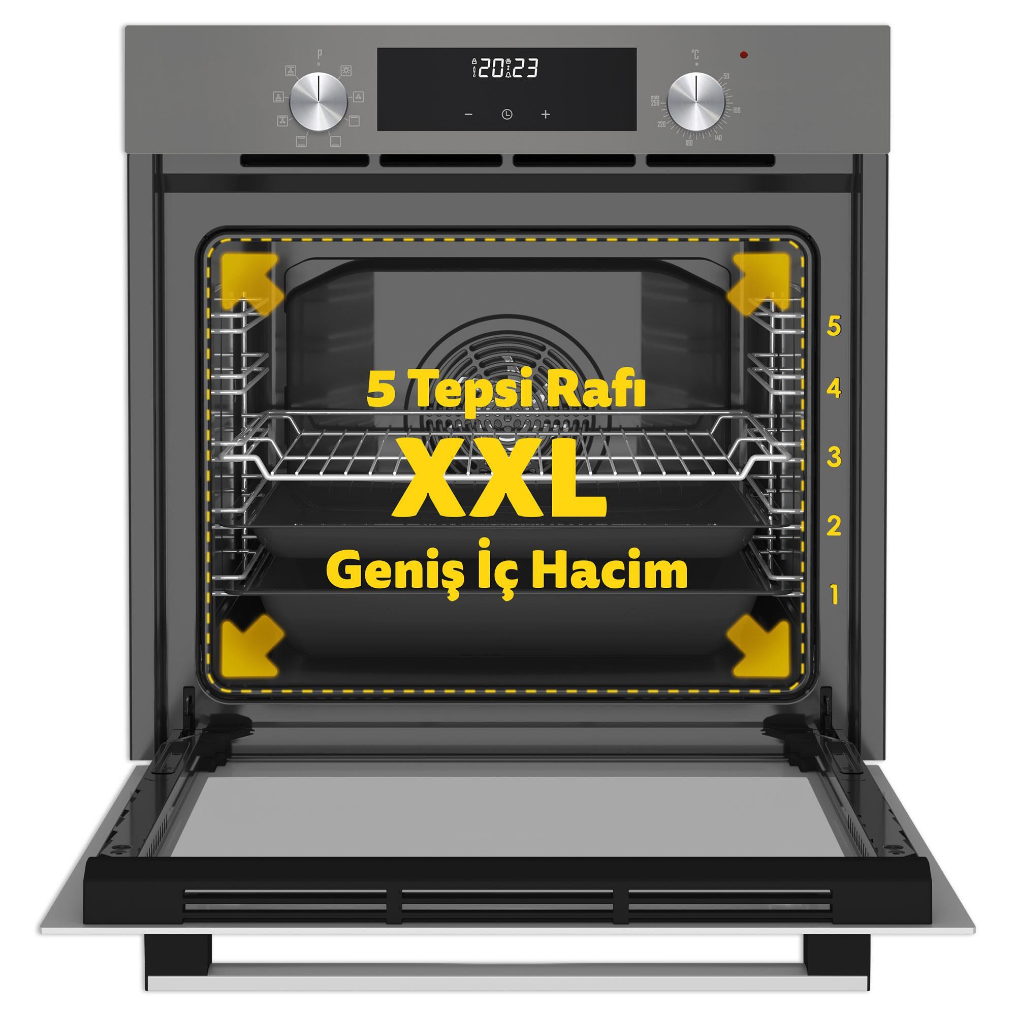 Simfer 8223 9 Fonksiyon QS Gri Cam Ankastre Fırın Power Turbo Dijital