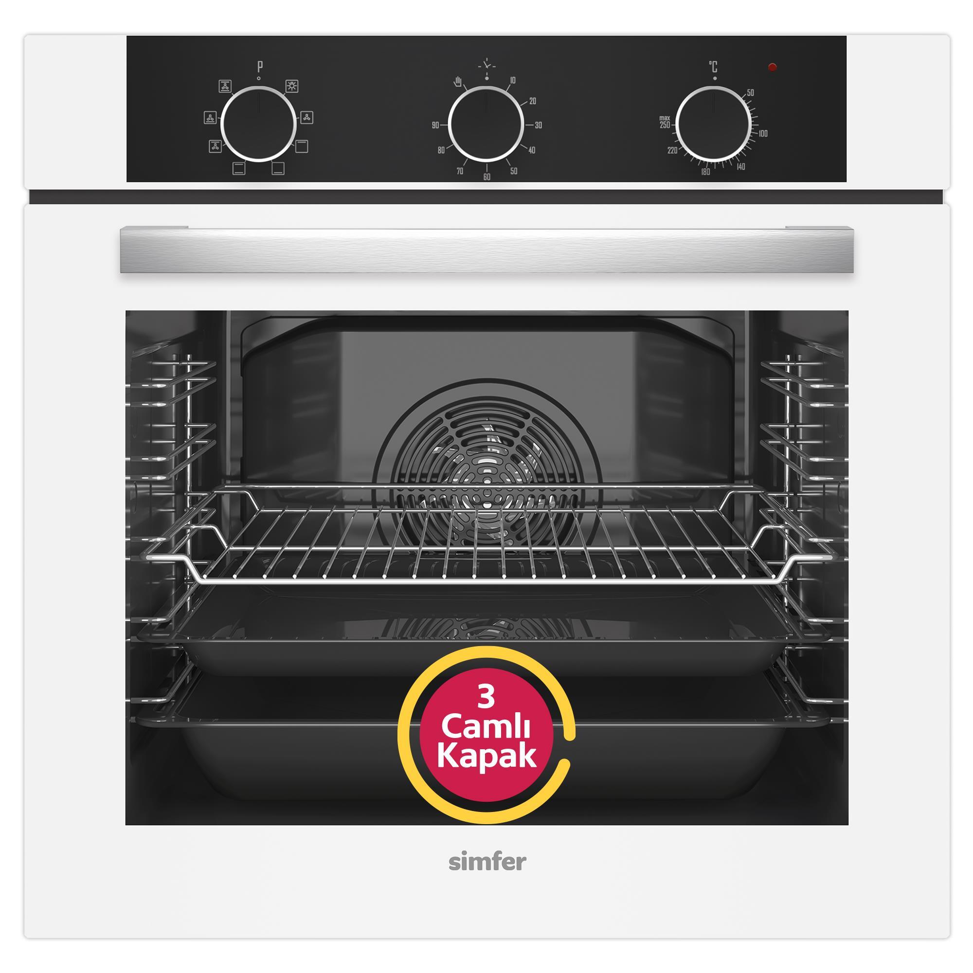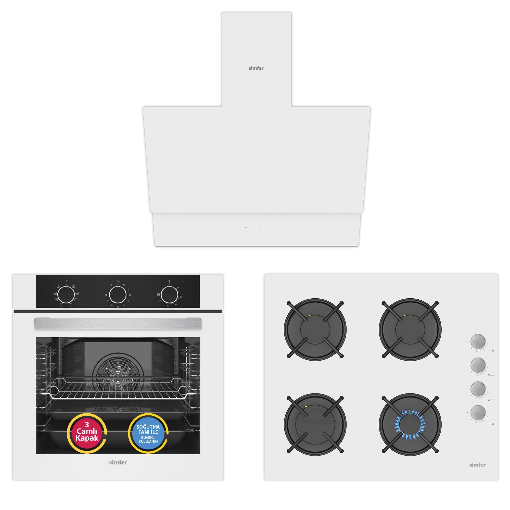 Simfer 4 Fonksiyon Trend Mekanik Beyaz Power Turbo 3'lü Ankastre Set (Fırın + Ocak + Davlumbaz)