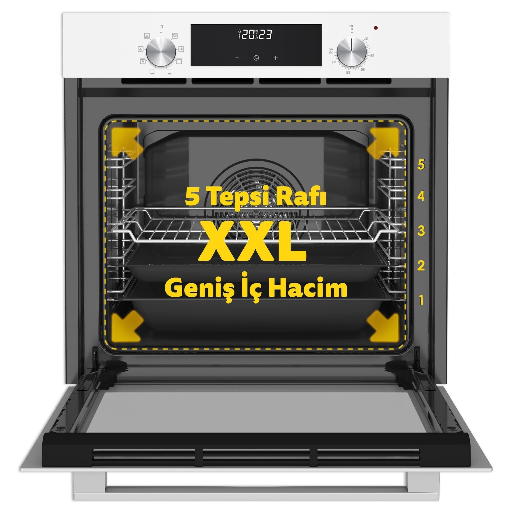 Simfer 9 Fonksiyon QS Beyaz Dijital Power Turbo Elektrikli 2'li Ankastre Set (Fırın + Elektrikli Ocak)