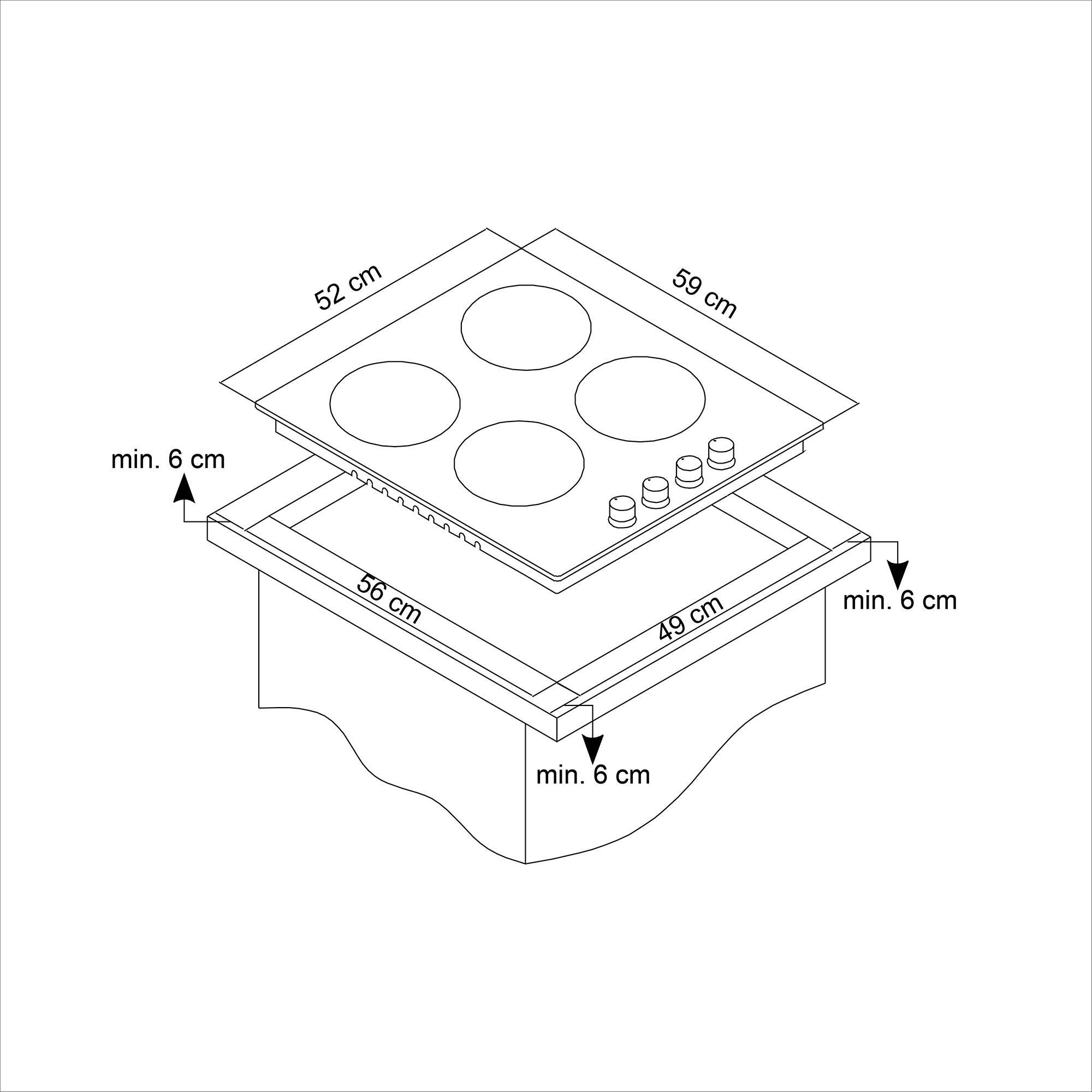 Ankastre Beyaz Cam Ocak 3G+1Wok Emaye Izgara