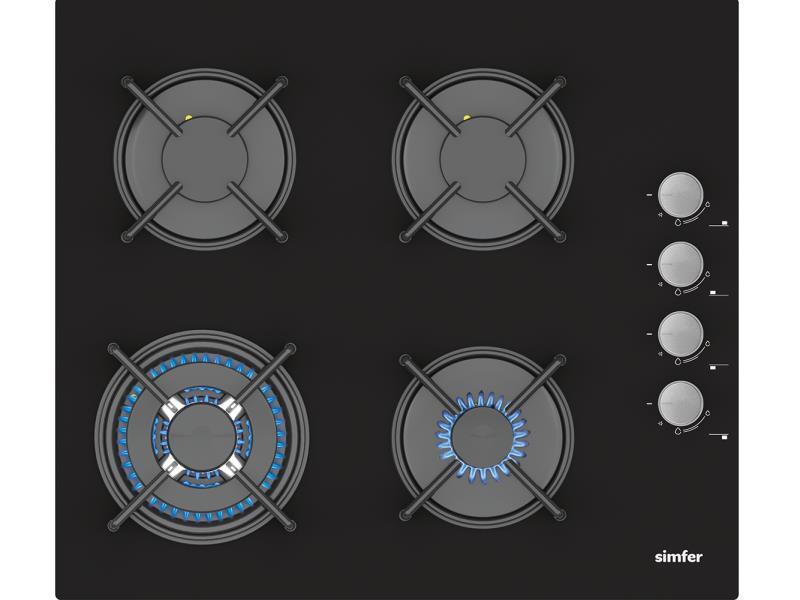 Simfer 3508 60cm Ankastre Siyah Cam Ocak 3G+1Wok Emaye Izgara