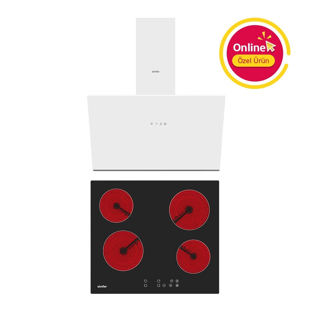 Simfer Trend Beyaz Elektrikli 2'li Ankastre Set (Elektrikli Ocak + Davlumbaz)