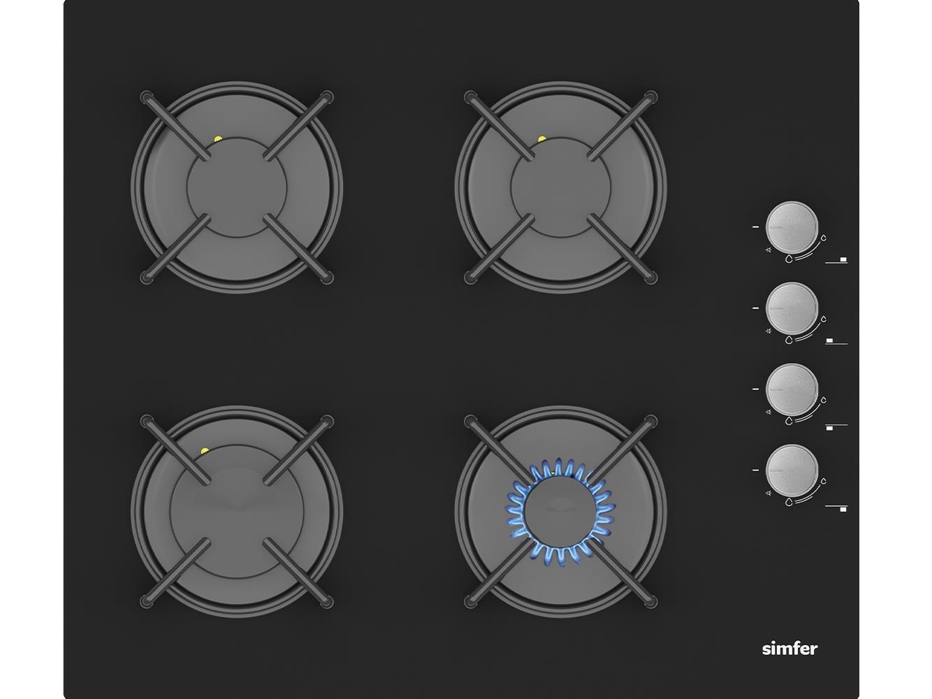3500-N 60CM Ankastre Siyah Cam Ocak 4G Emaye Izgara