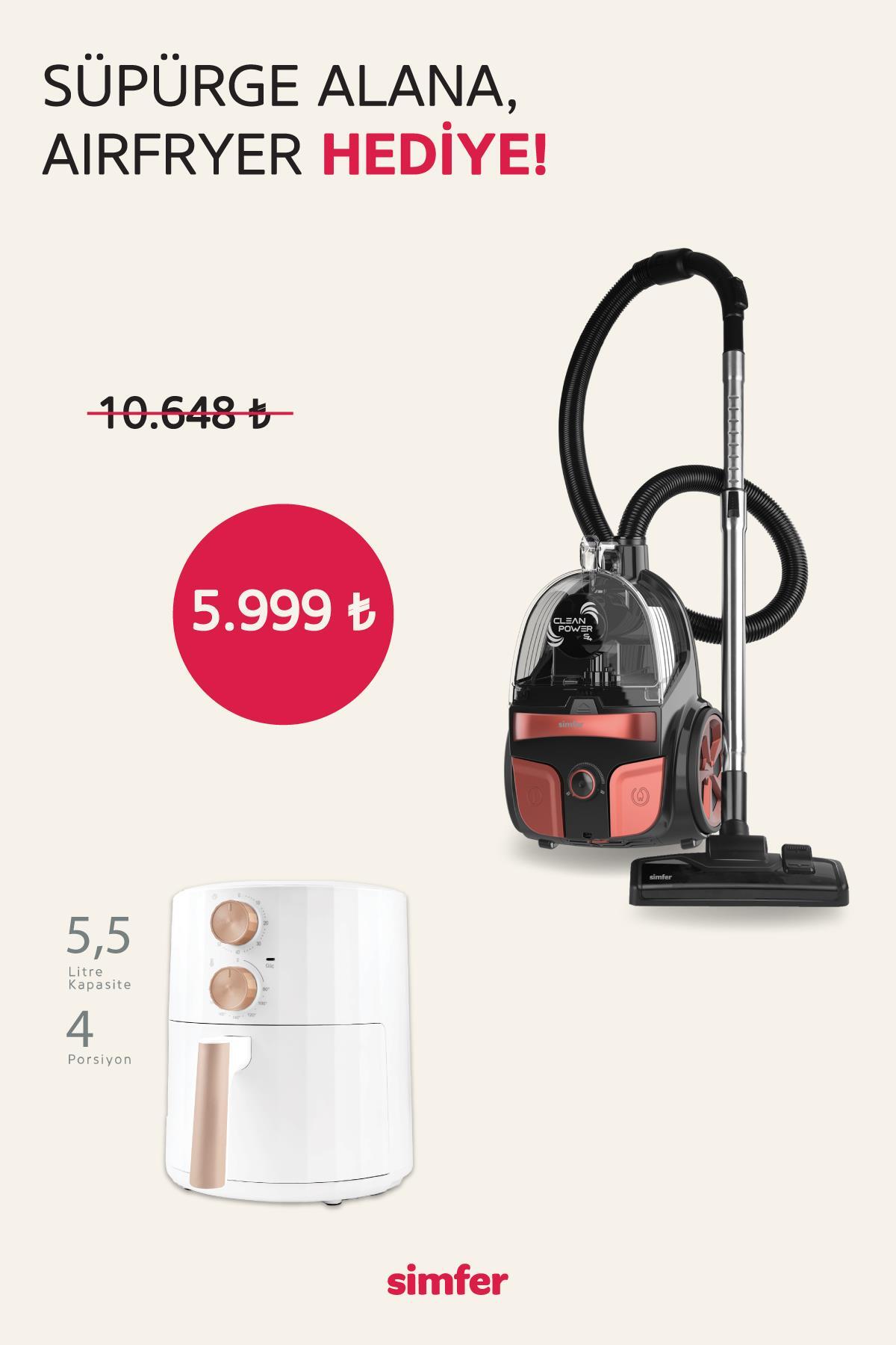 Simfer 6706 5.5Litre Airfry Silent Pro Mekanik Beyaz