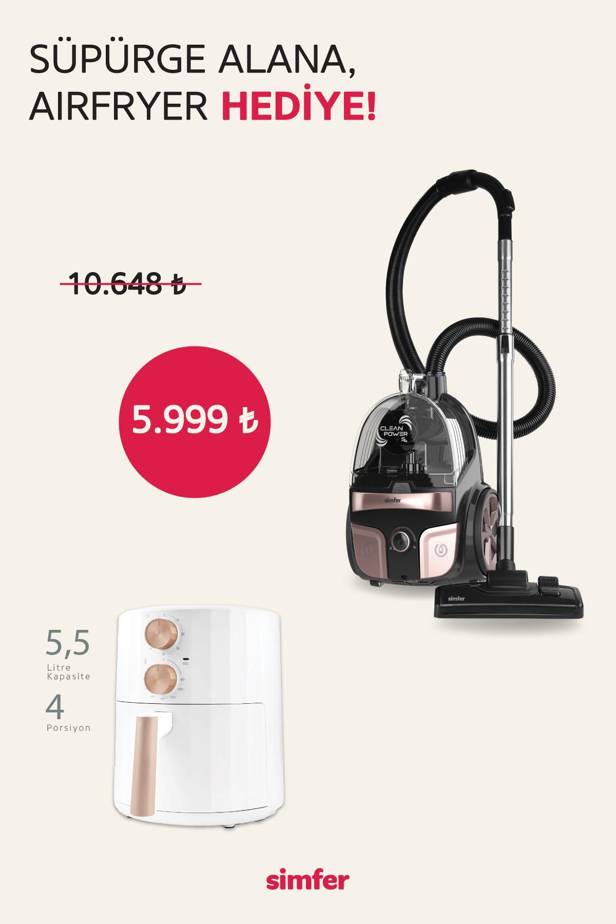 Simfer 6706 5.5Litre Airfry Silent Pro Mekanik Beyaz